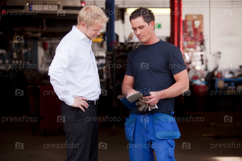 Уверенный механик с клиентом