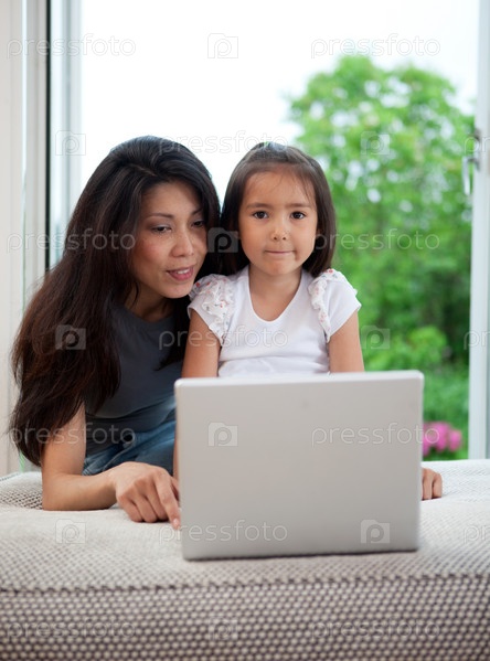 Мать и дочь с компьютером