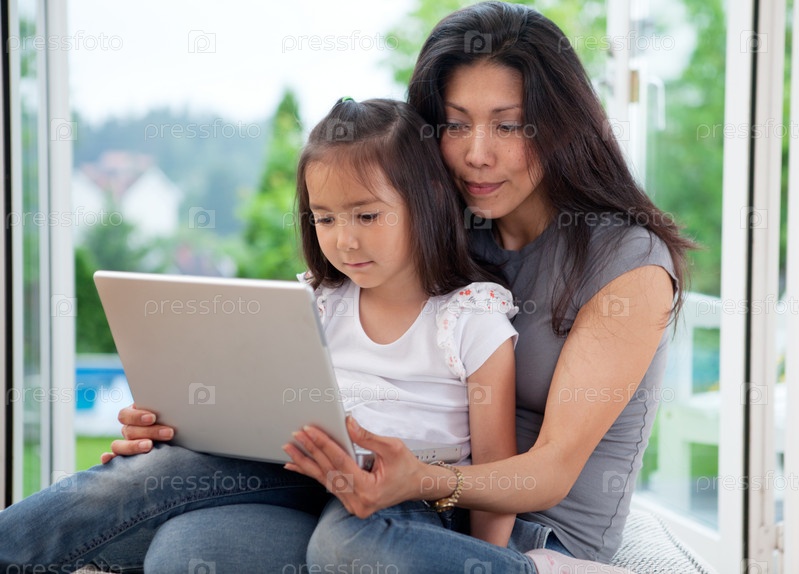 Мать и дочь с ноутбуком