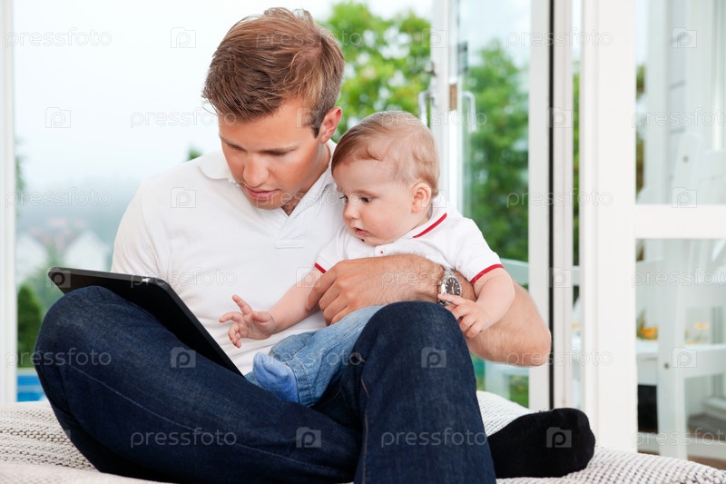 Отец с сыном и планшетным компьютером