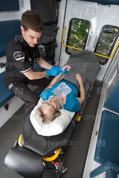 Интерьер скорой помощи с пациентом