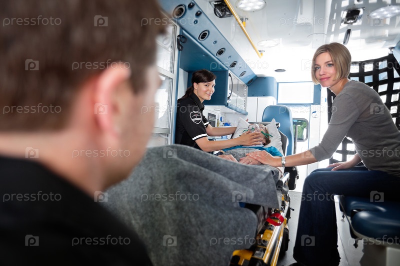 Пожилая пациентка в карете скорой помощи