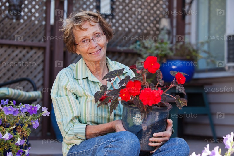 Пожилая женщина в саду