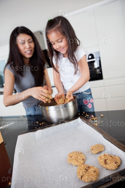 Мать и дочь делают печенье