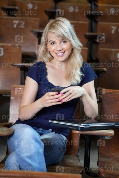 Студентка с мобильным телефоном