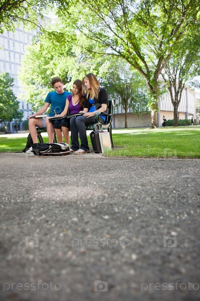 Студенты на скамейке в парке