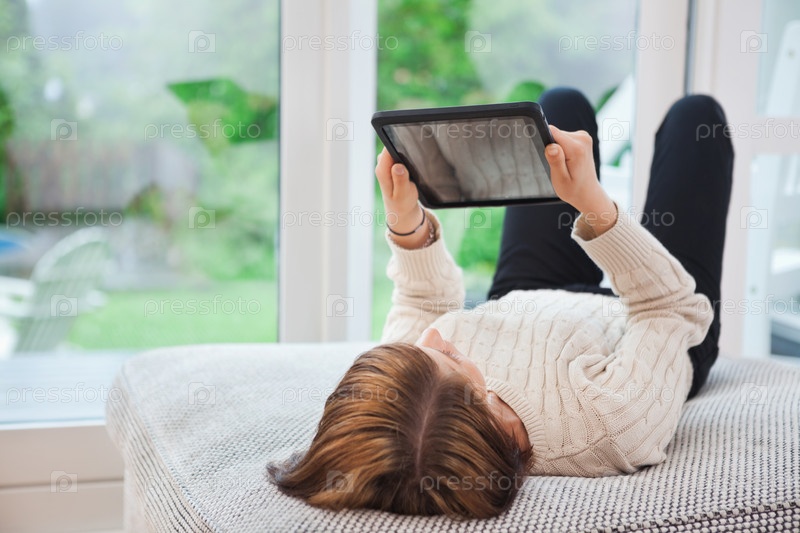Женщина, держащая планшетный компьютер