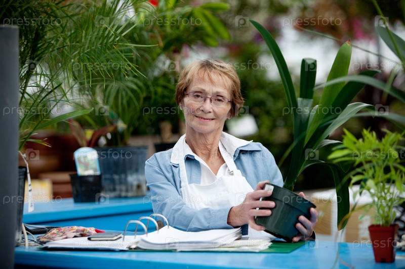 Пожилой кассир в садовом центр