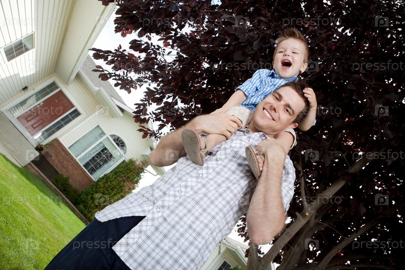 Портрет молодого отца с сыном на свежем воздухе