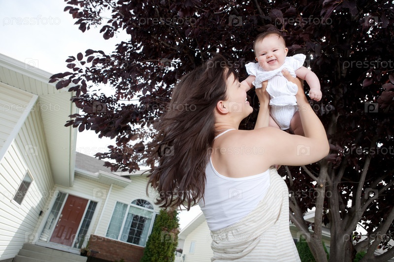 Мать поднимает дочь