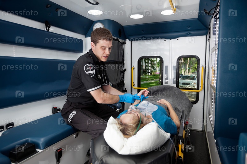 Интерьер машины скорой помощи с пациентом