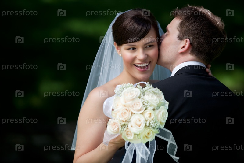 Жених целует невесту в ухо