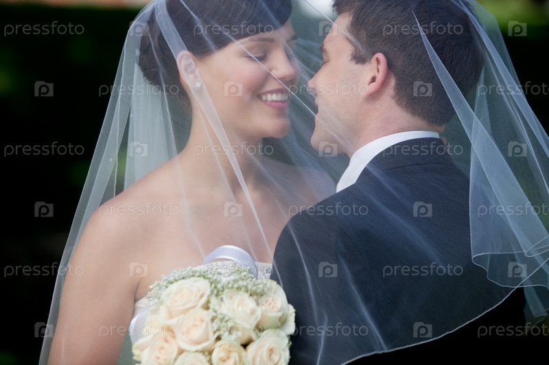 Поцелуй молодоженов под фатой