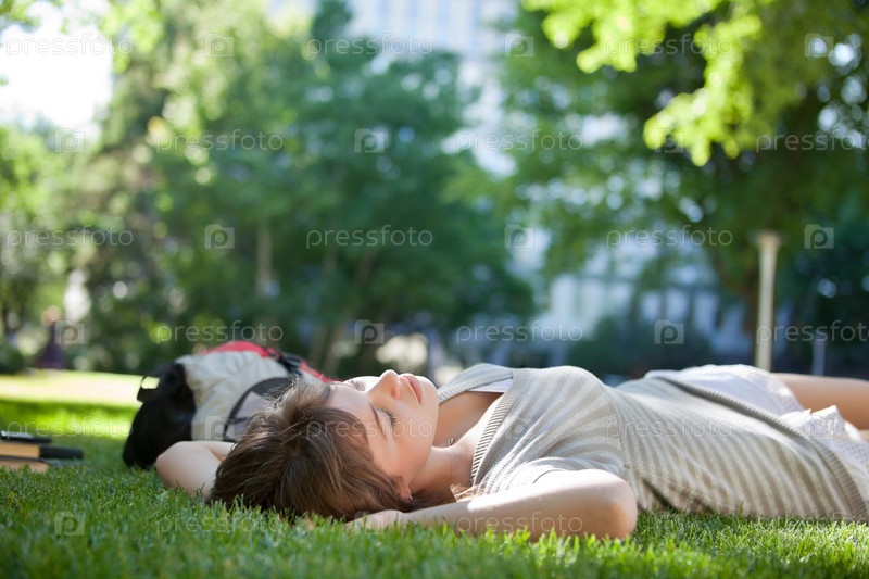 Девушка спит на траве