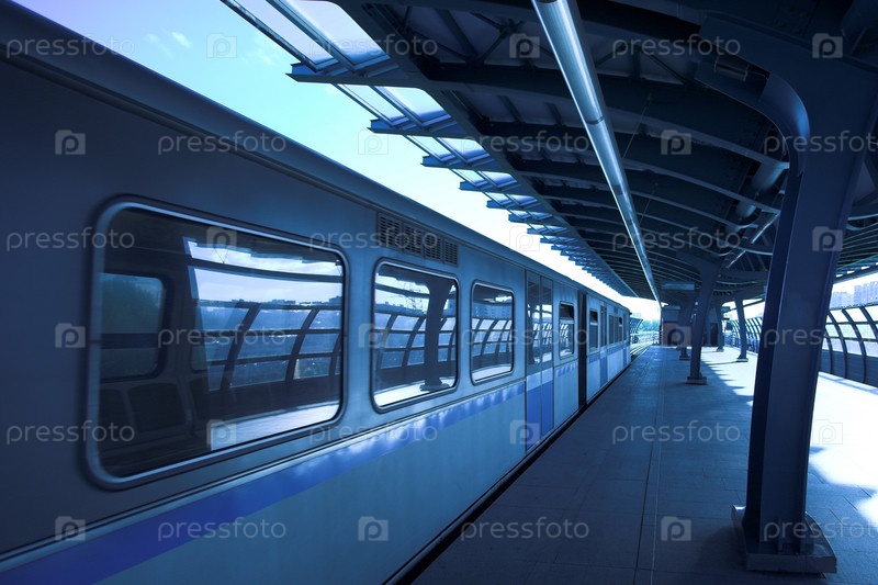 Синий поезд на платформе метро