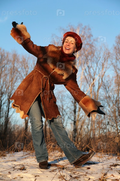 Молодая красивая женщина позирует на улице зимой