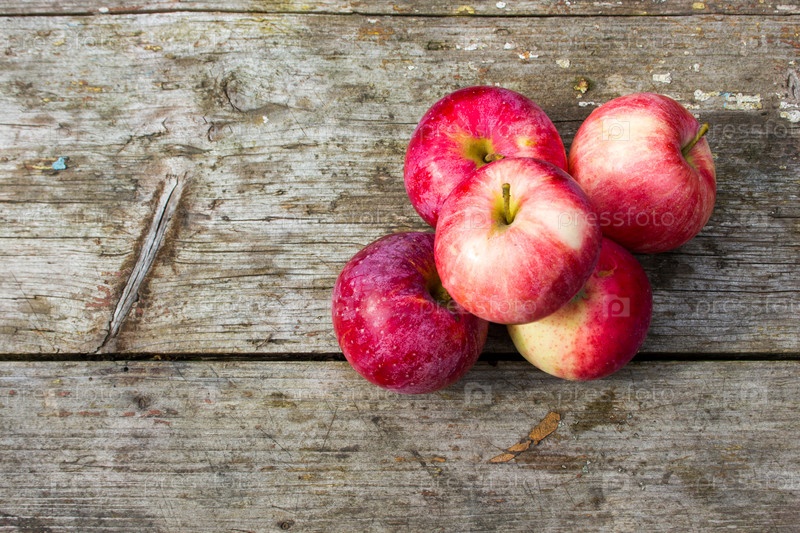 Яблоки на старом деревянном столе
