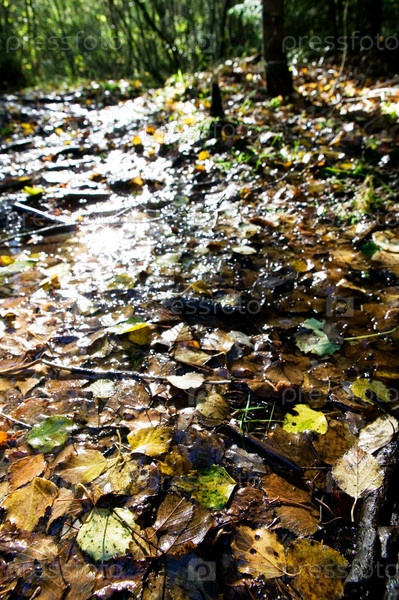 Мокрые листья с отражением
