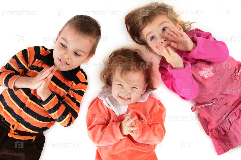 Трое детей лежат на спине на белом фоне