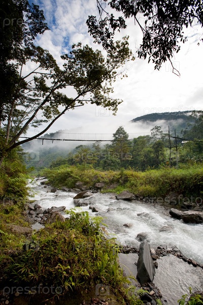 Река с подвесным мостом