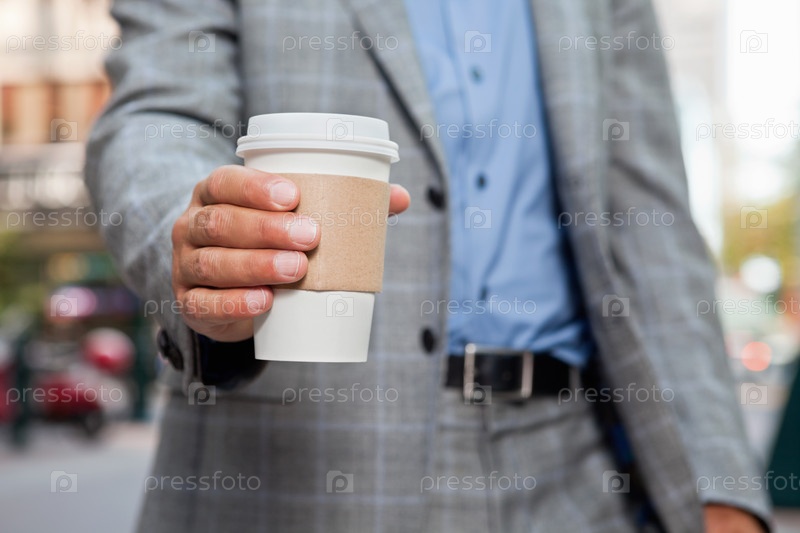 Бизнесмен держит одноразовый стакан