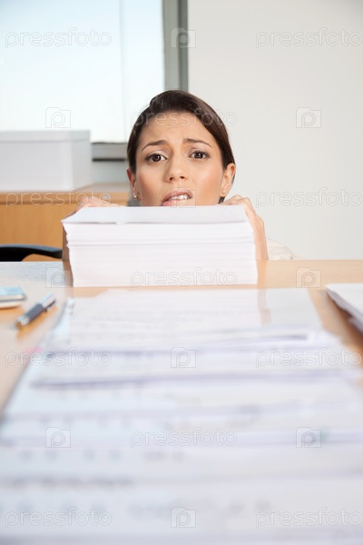 Деловая женщина за кипой бумаг