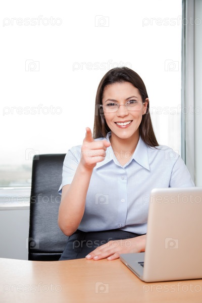 Портрет бизнес-леди, указывающей на зрителя