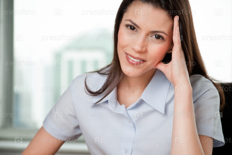 Портрет молодой улыбающейся деловой женщины
