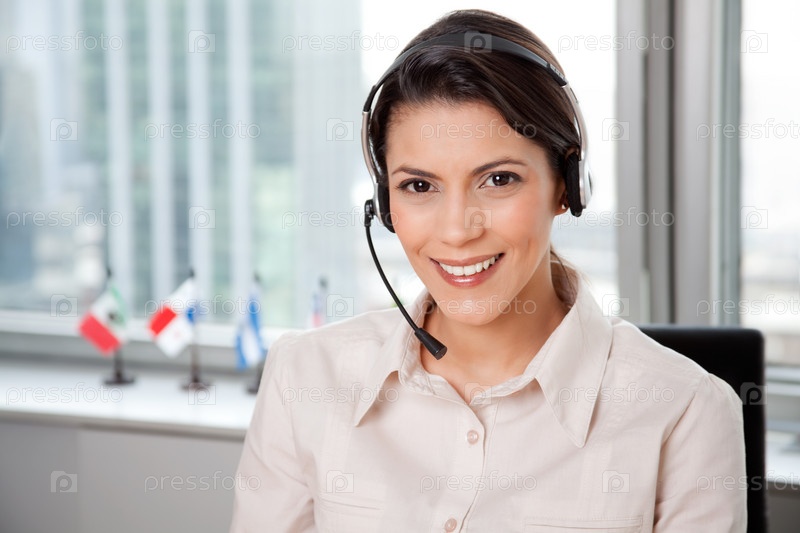 Молодая деловая женщина с гарнитурой
