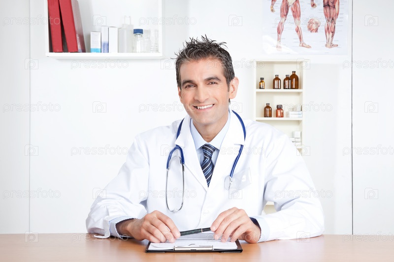 Мужчина-врач сидит за столом