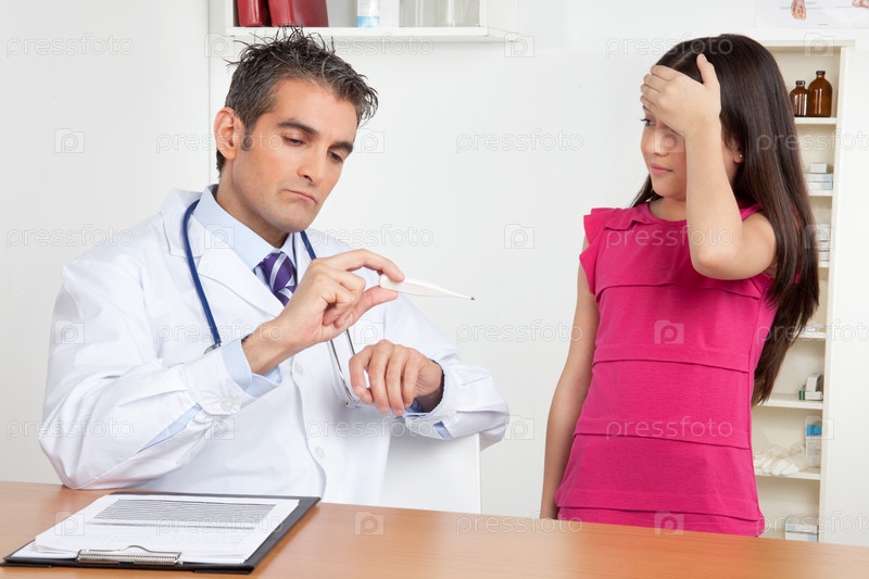 Доктор измеряет температуру девочке