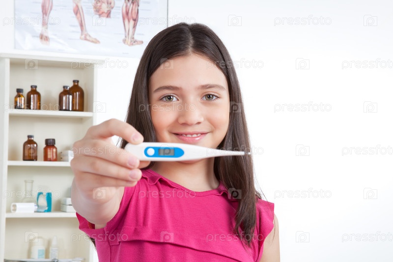 Девочка с градусником в руке