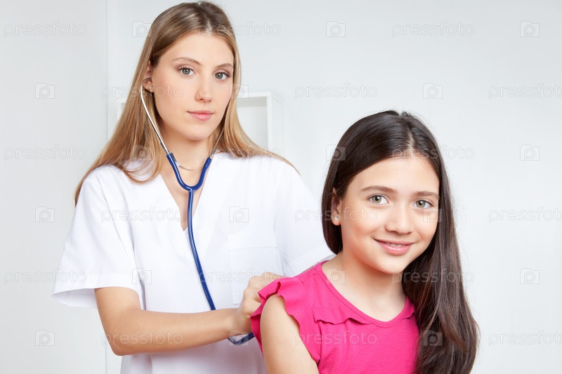 Доктор осматривает ребенка в клинике