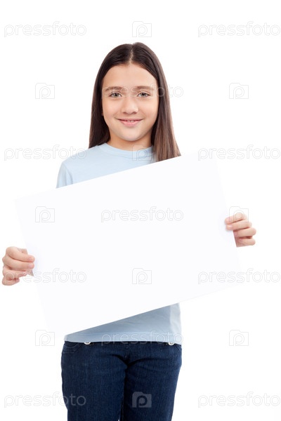 Девочка держит пустой плакат