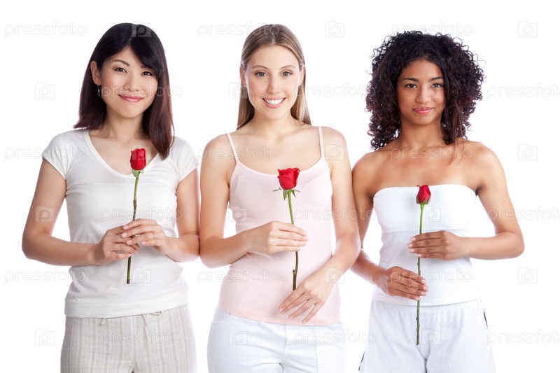 Многонациональная группа женщин с розами в руках