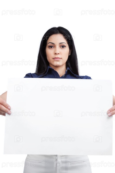 Женщина-предприниматель с пустым плакатом