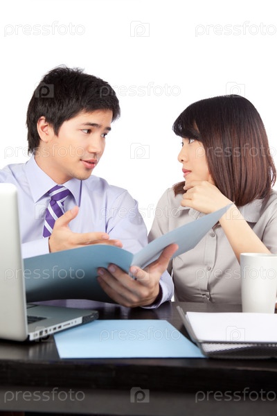 Бизнесмен и бизнес-леди на работе