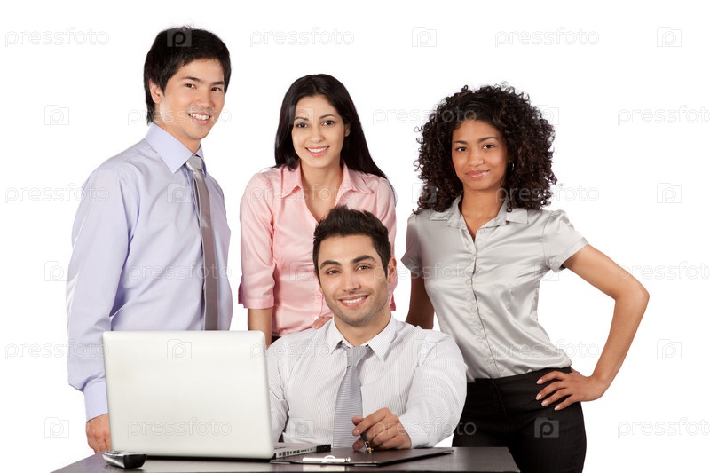 Портрет группы предпринимателей с ноутбуком