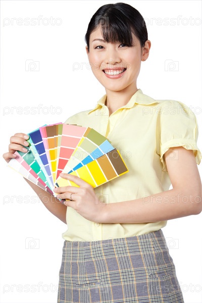 Азиатская женщина показывает образцы цветов