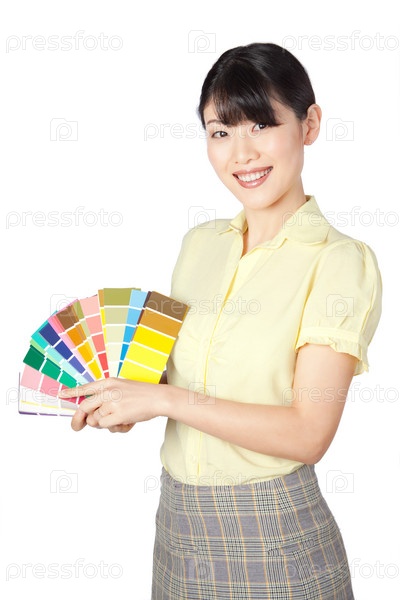 Азиатская женщина показывает образцы цветов