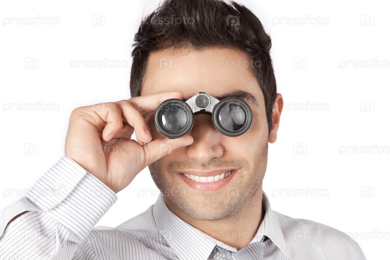 Бизнесмен смотрит в бинокль