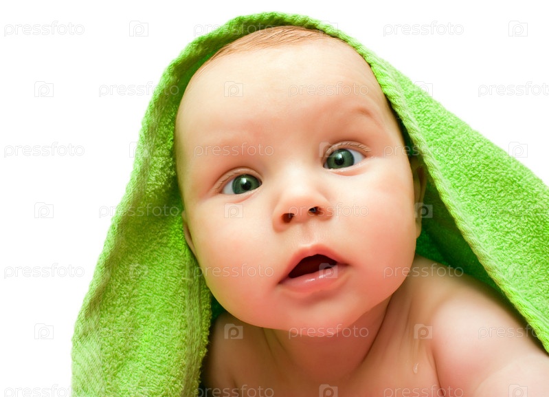 Сероглазый ребенок после мытья