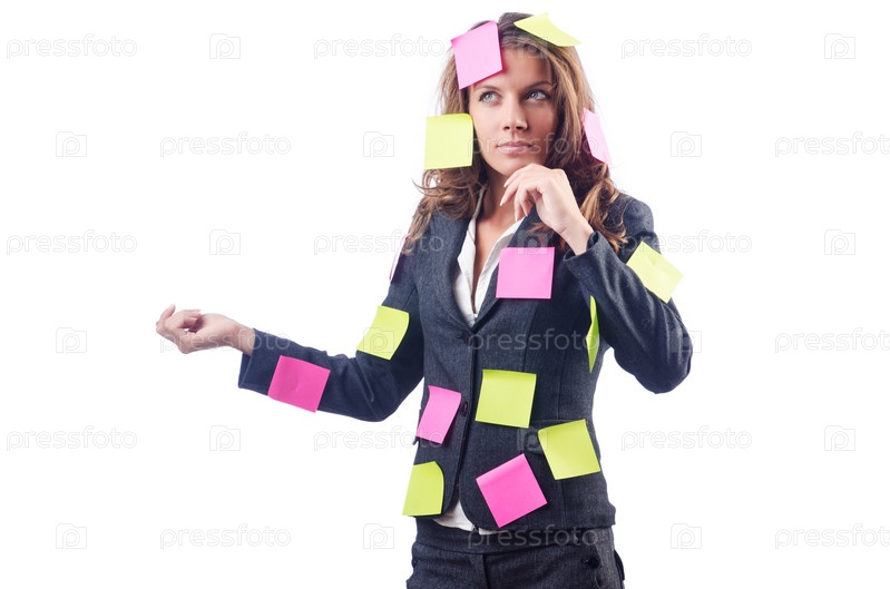 Женщина с большим количеством заметок