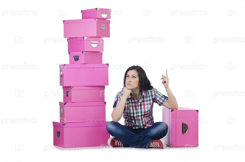 Девушка со стопкой коробок