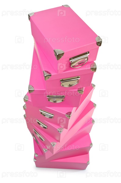 Розовые подарочные коробки. изолированные на белом фоне