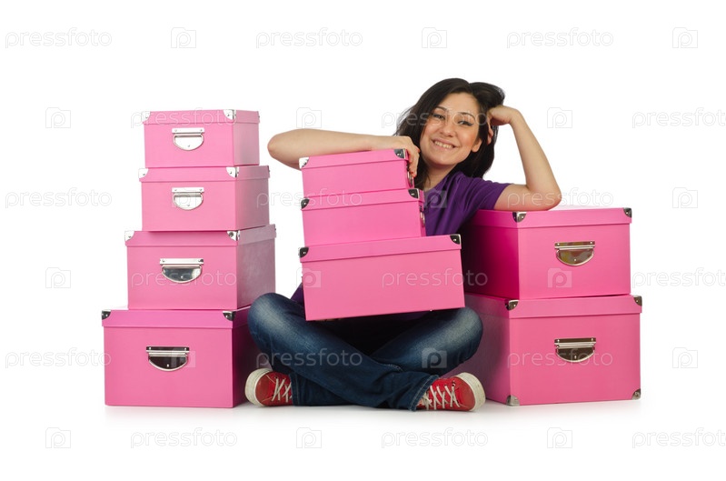 Девушка со стопкой коробок