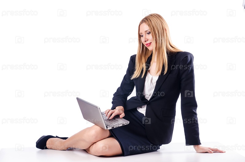 Женщина с ноутбуком на белом фоне