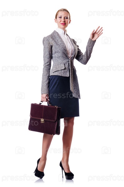 Деловая женщина с портфелем на белом фоне
