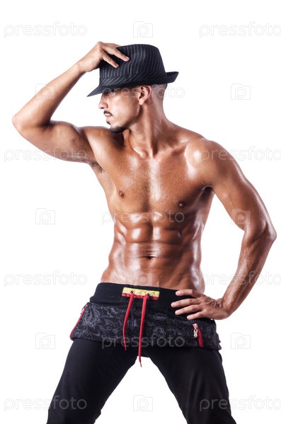 Мускулистый танцор, изолированный на белом фоне