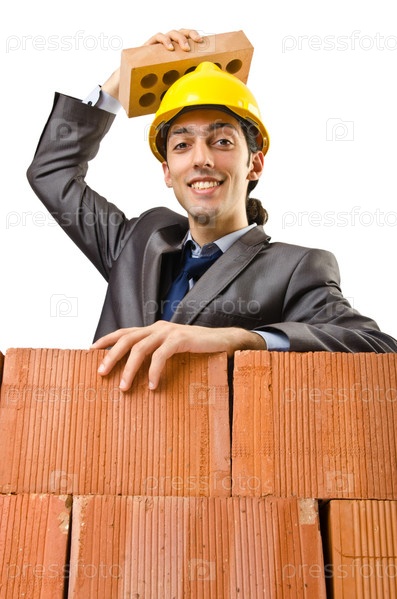 Бизнесмен у кирпичной стены